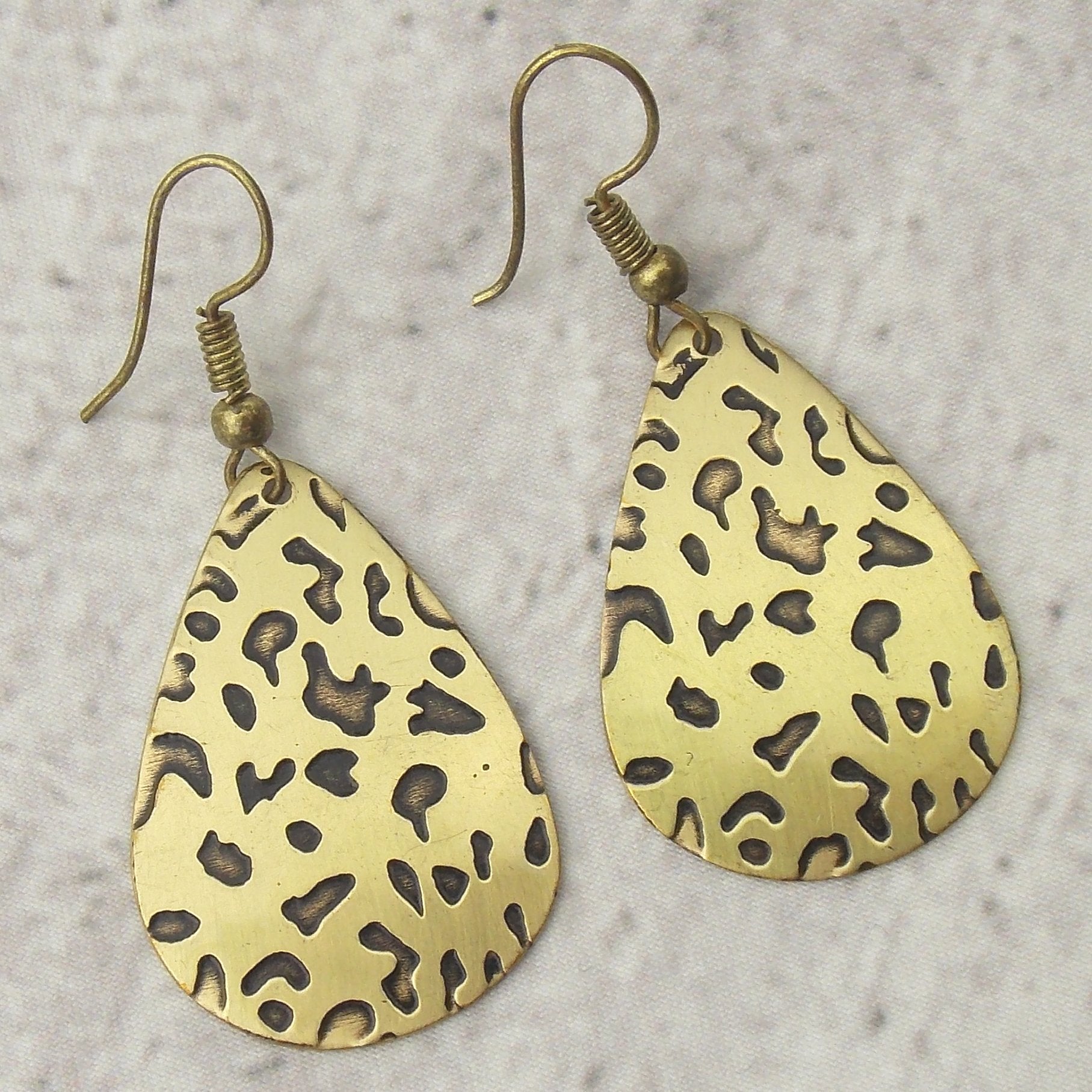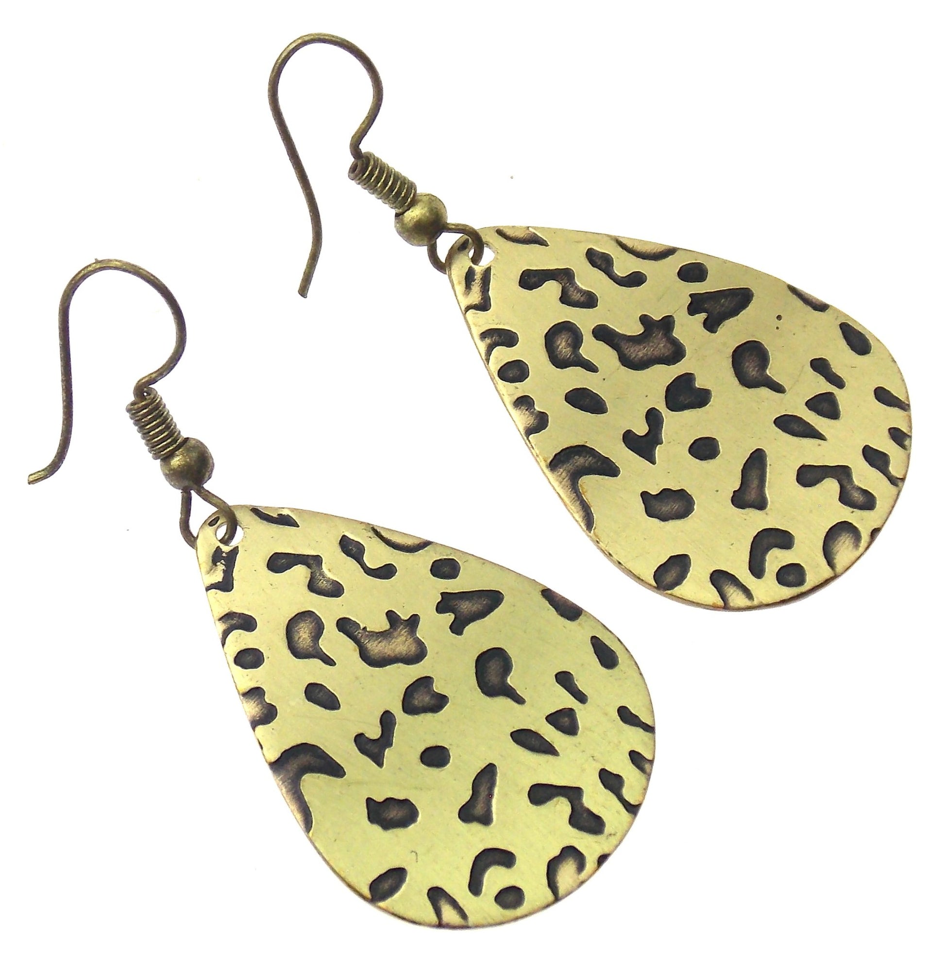 Anju Brass Teardrop Earrings Leopard Print Handcrafted Brass Hang Christmas Gift