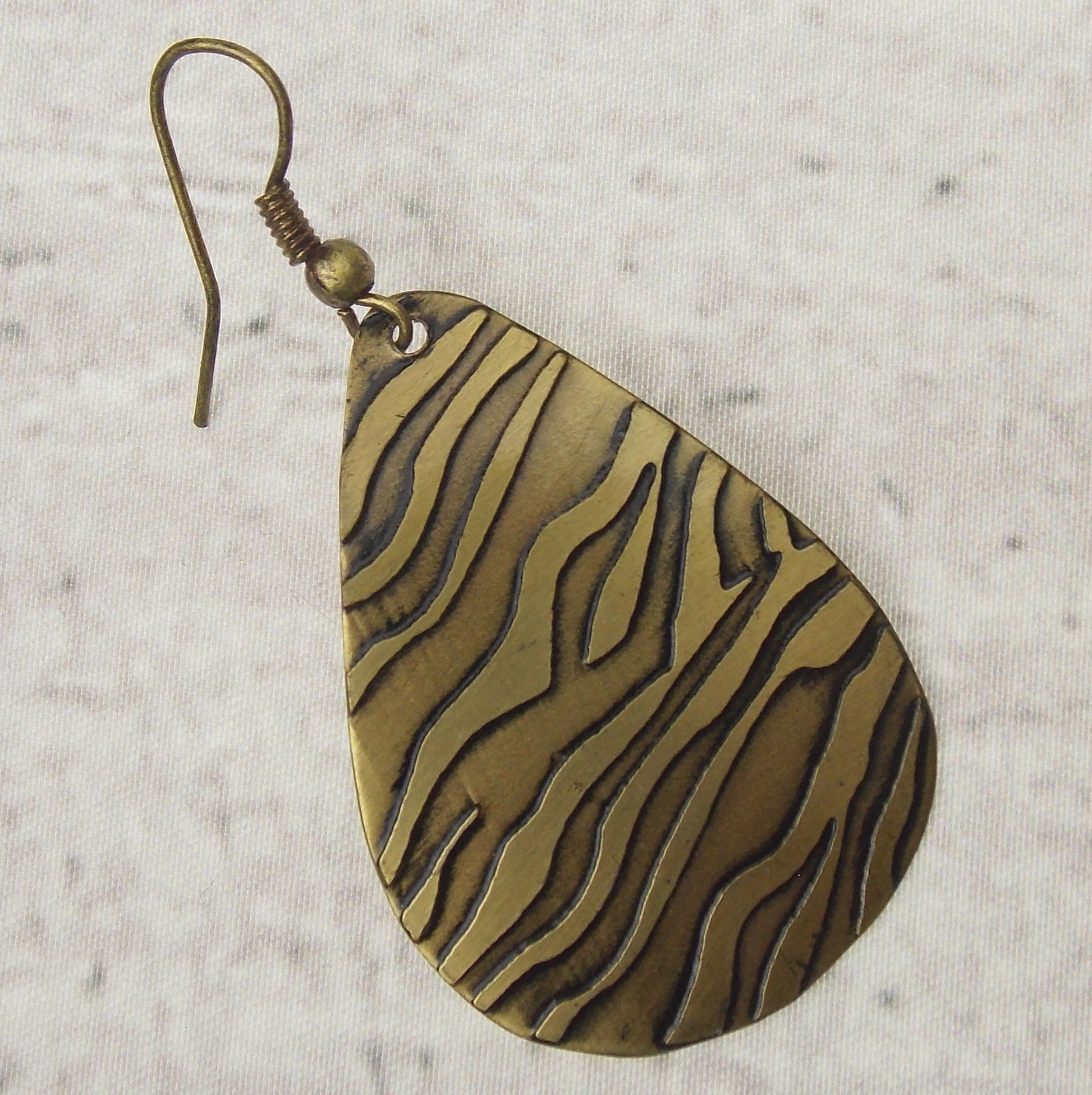 Anju Brass Teardrop Earrings Zebra Animal Print Handcrafted Brass Dangle Gift