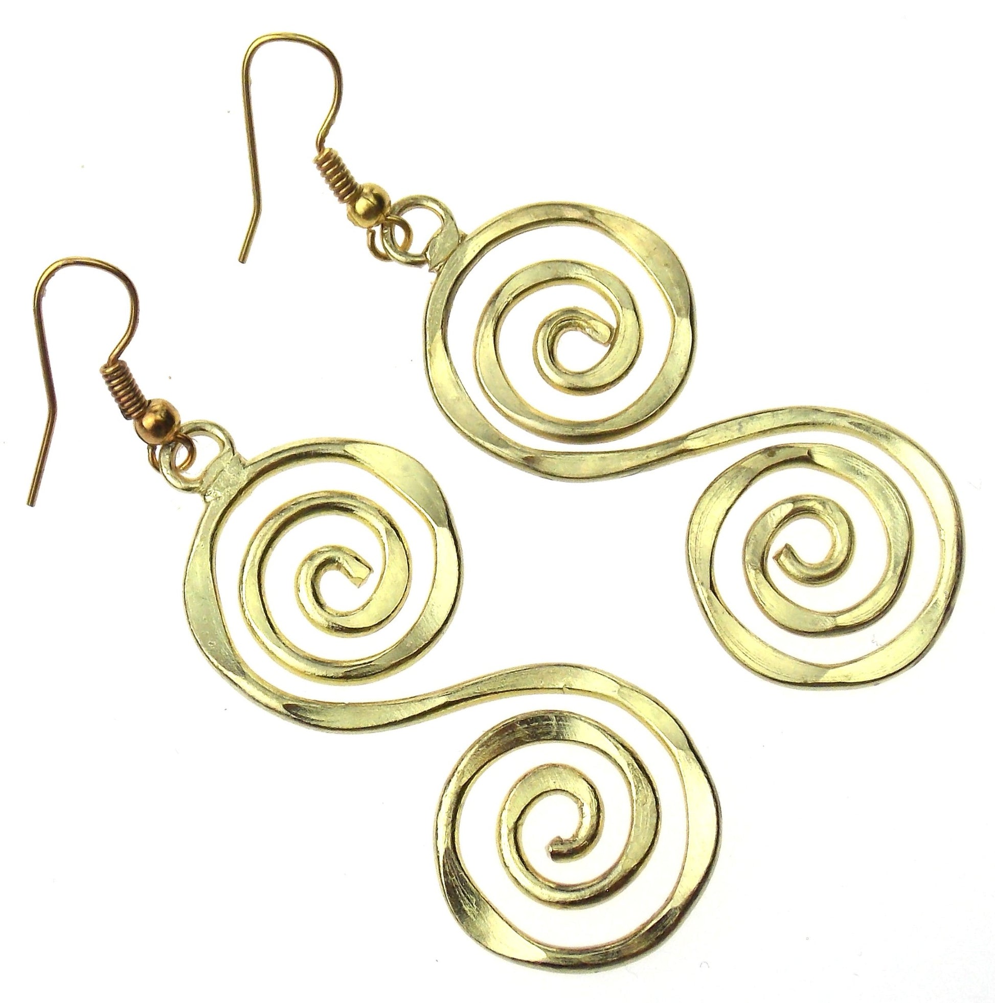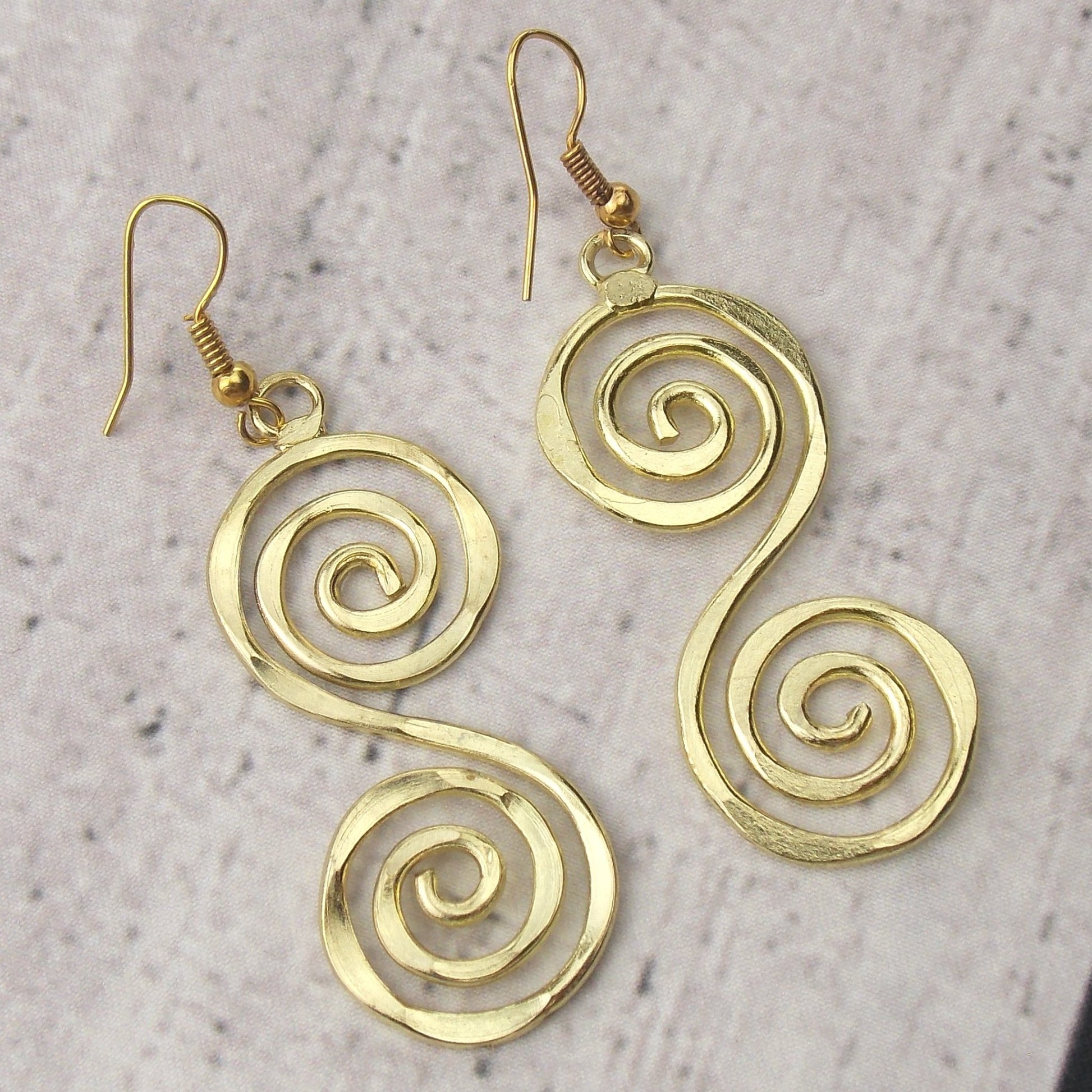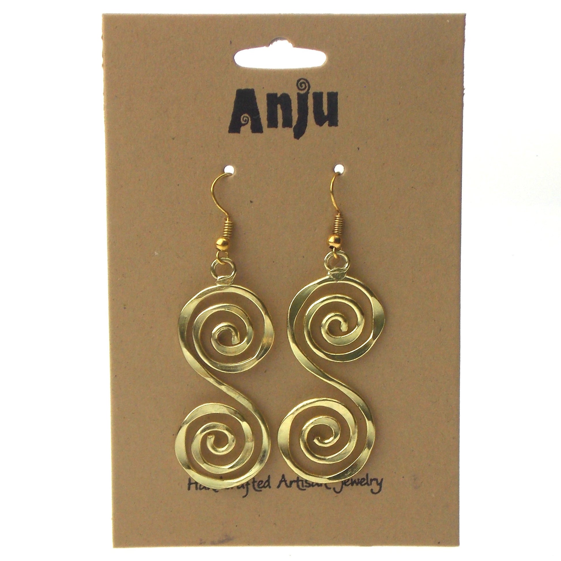 Anju Gold Plated Earrings S-Shaped Spiral Handcrafted Dangle Xmas Gift Holiday