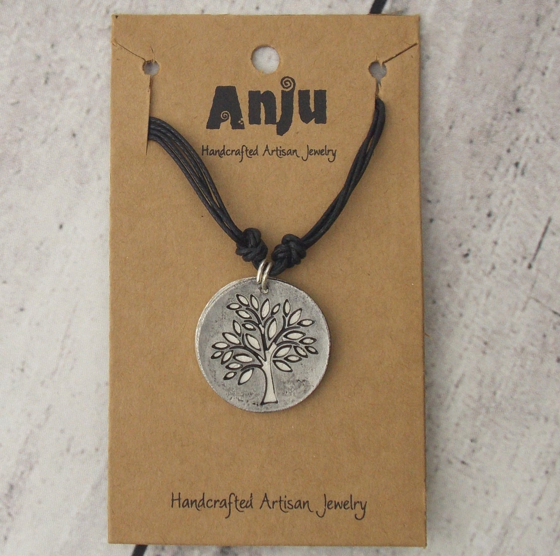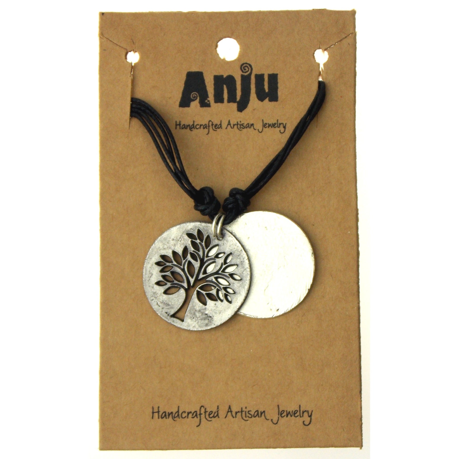 Anju Tree of Life Pewter Necklace Artisan Handcrafted Medallion Charm Black Cord