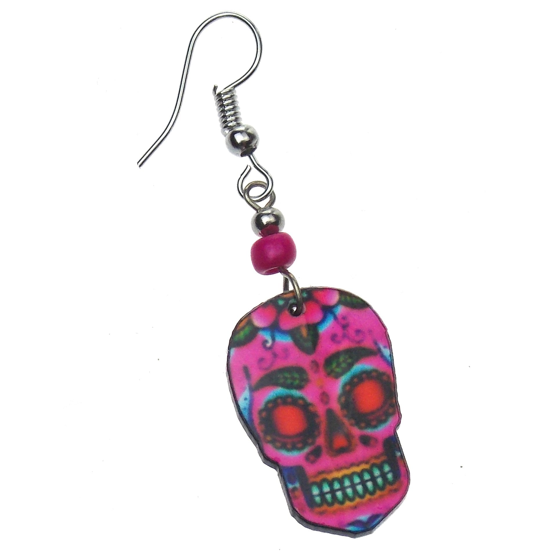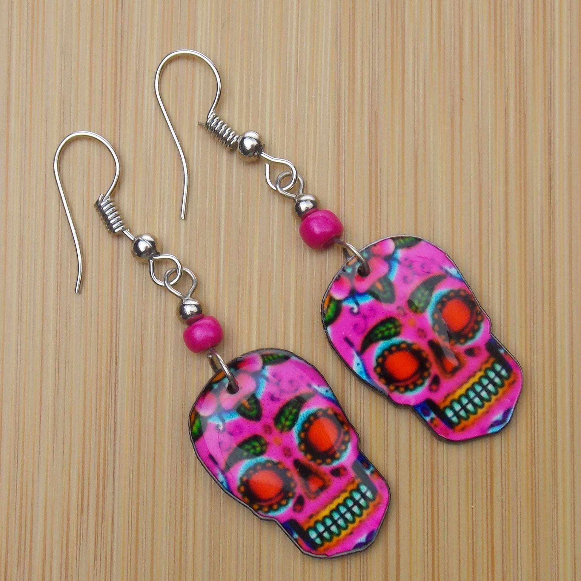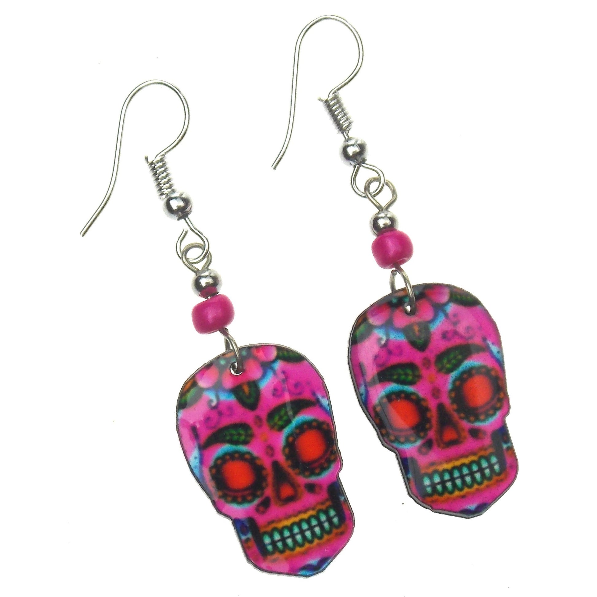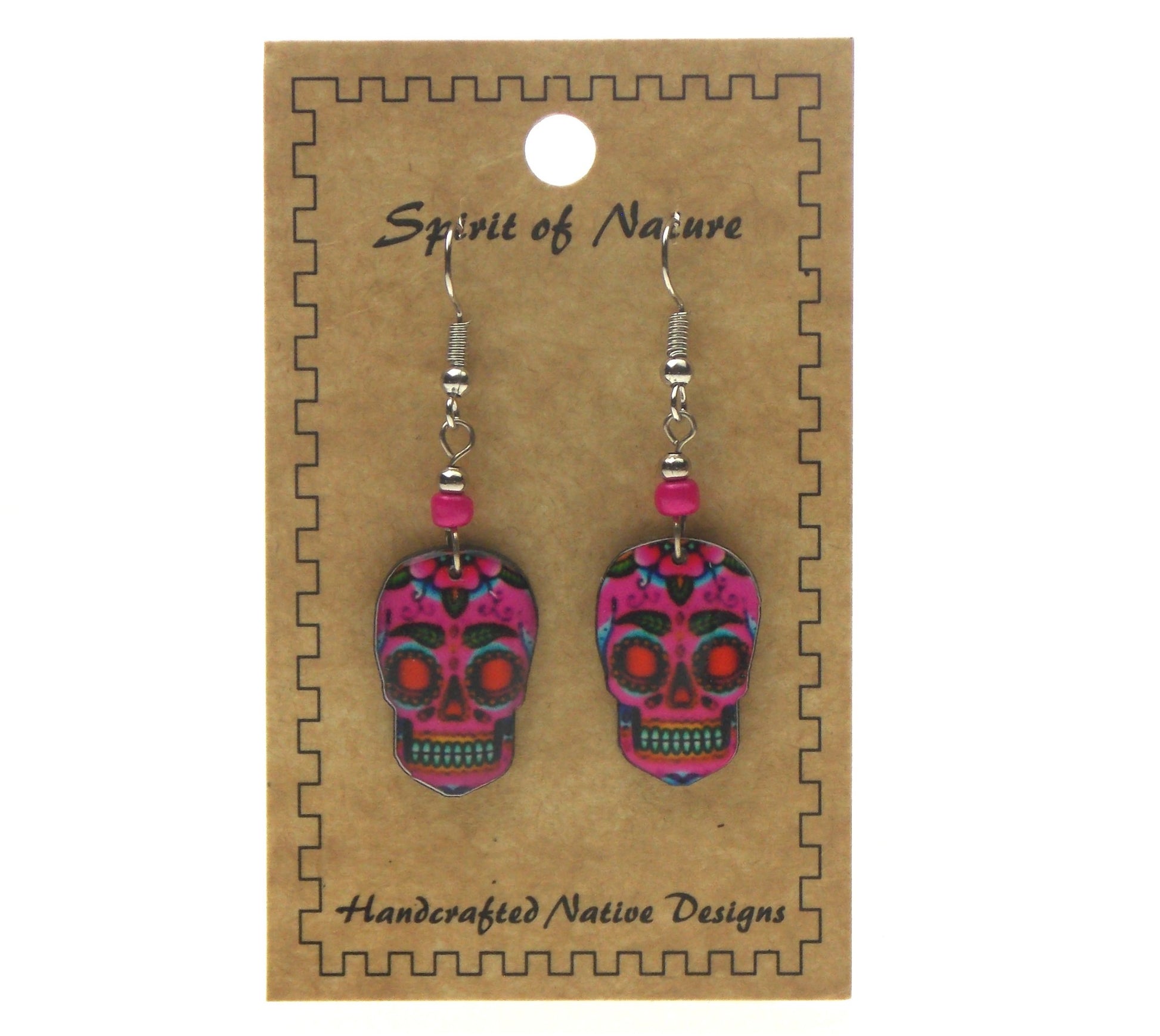 Handcrafted Pink Sugar Skull Earrings Spirit Nature Native Southwest Xmas Gift