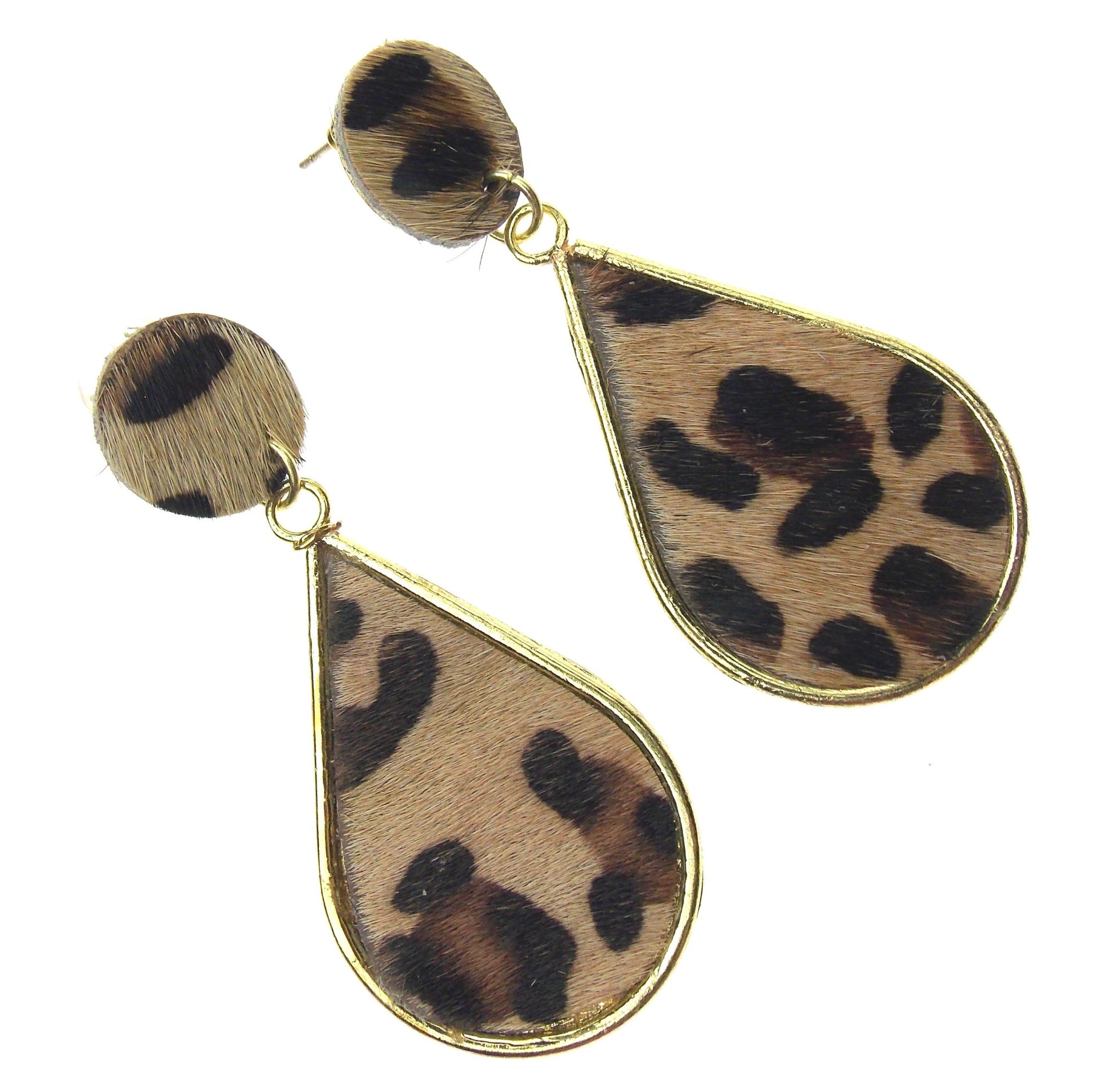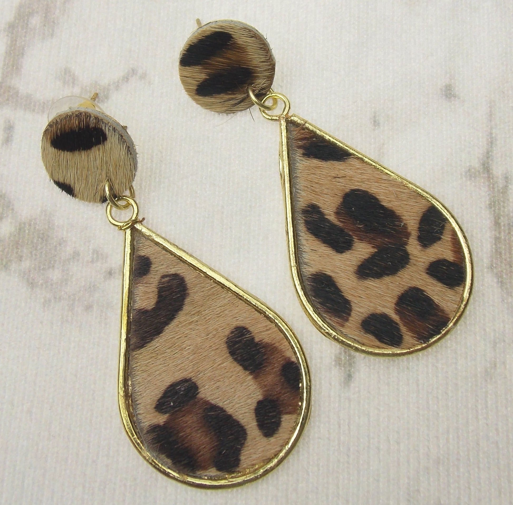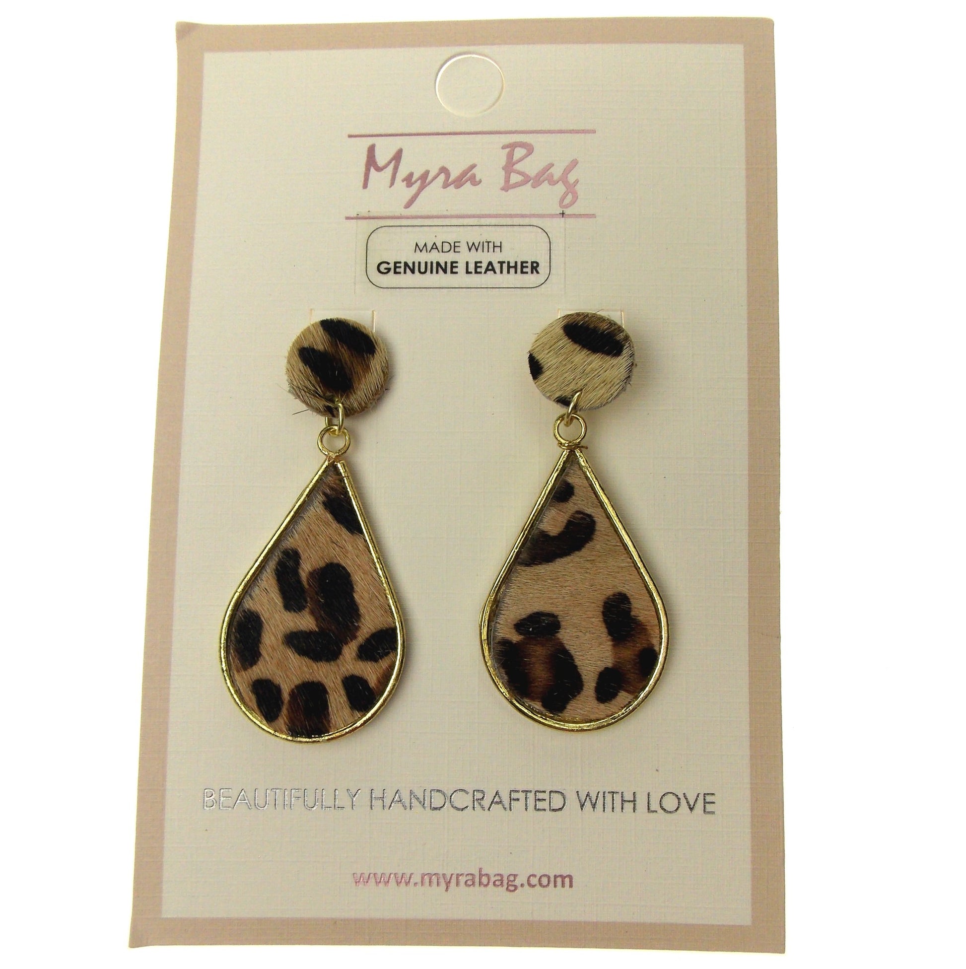 Myra Bag Animal Print Dangle Earrings Genuine Leather Handcrafted Boho Gift
