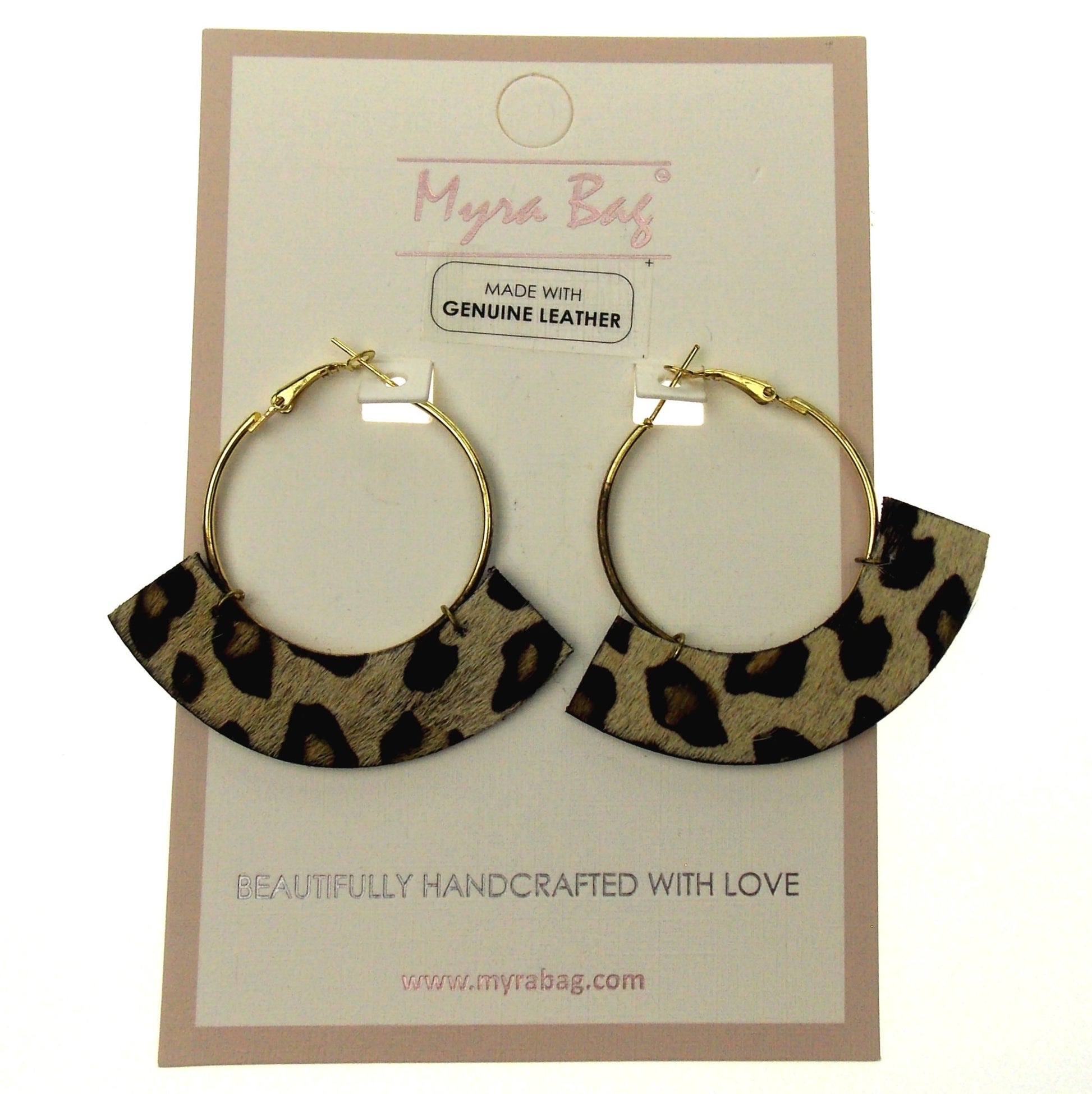 Myra Bag Animal Print Hoop Earrings Genuine Leather Handcrafted Boho Dangle Gift