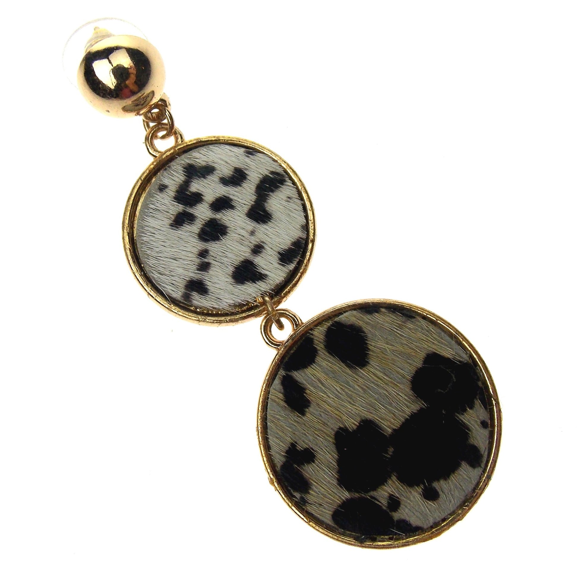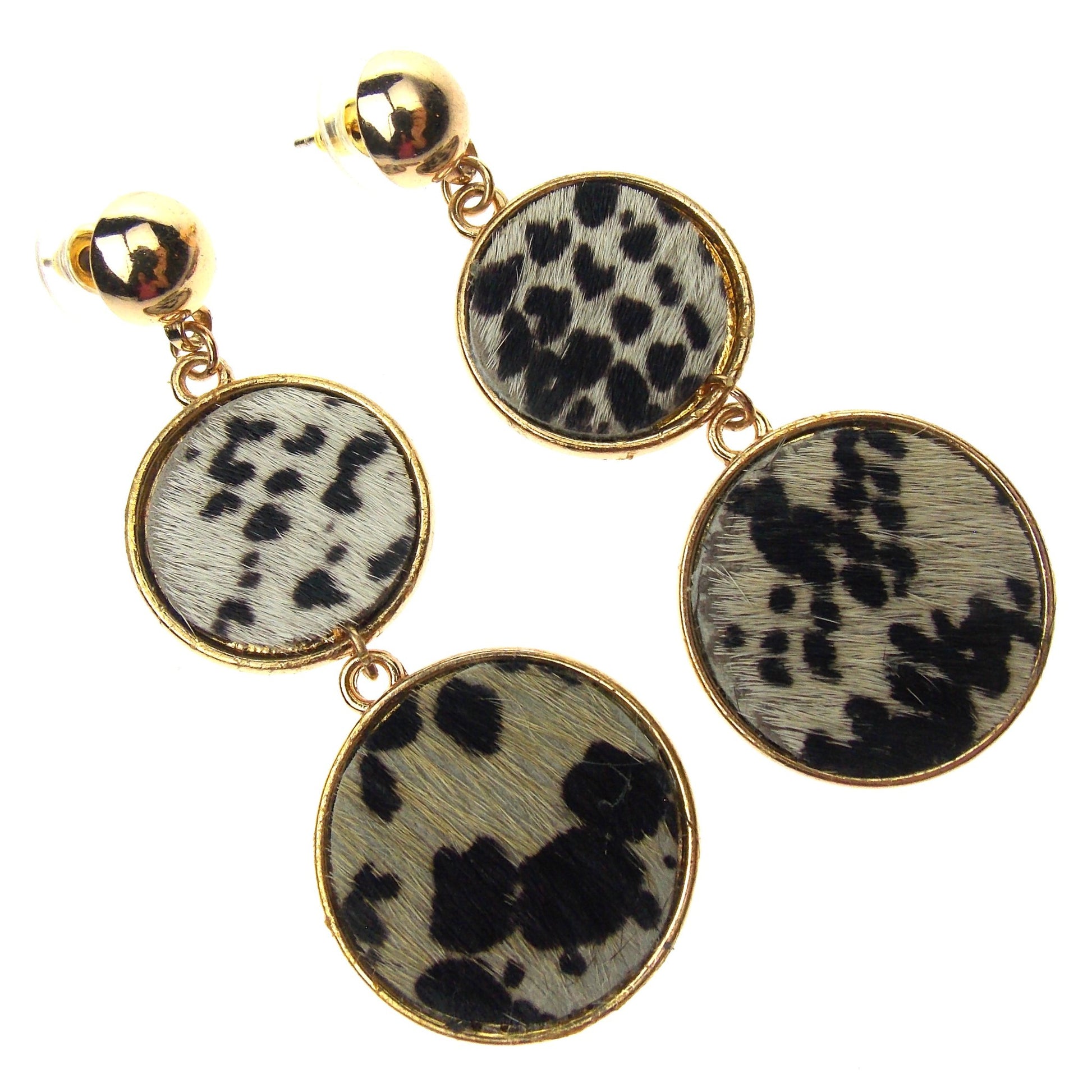 Myra Bag White Black Print Dangling Earrings Genuine Leather Handcrafted Boho