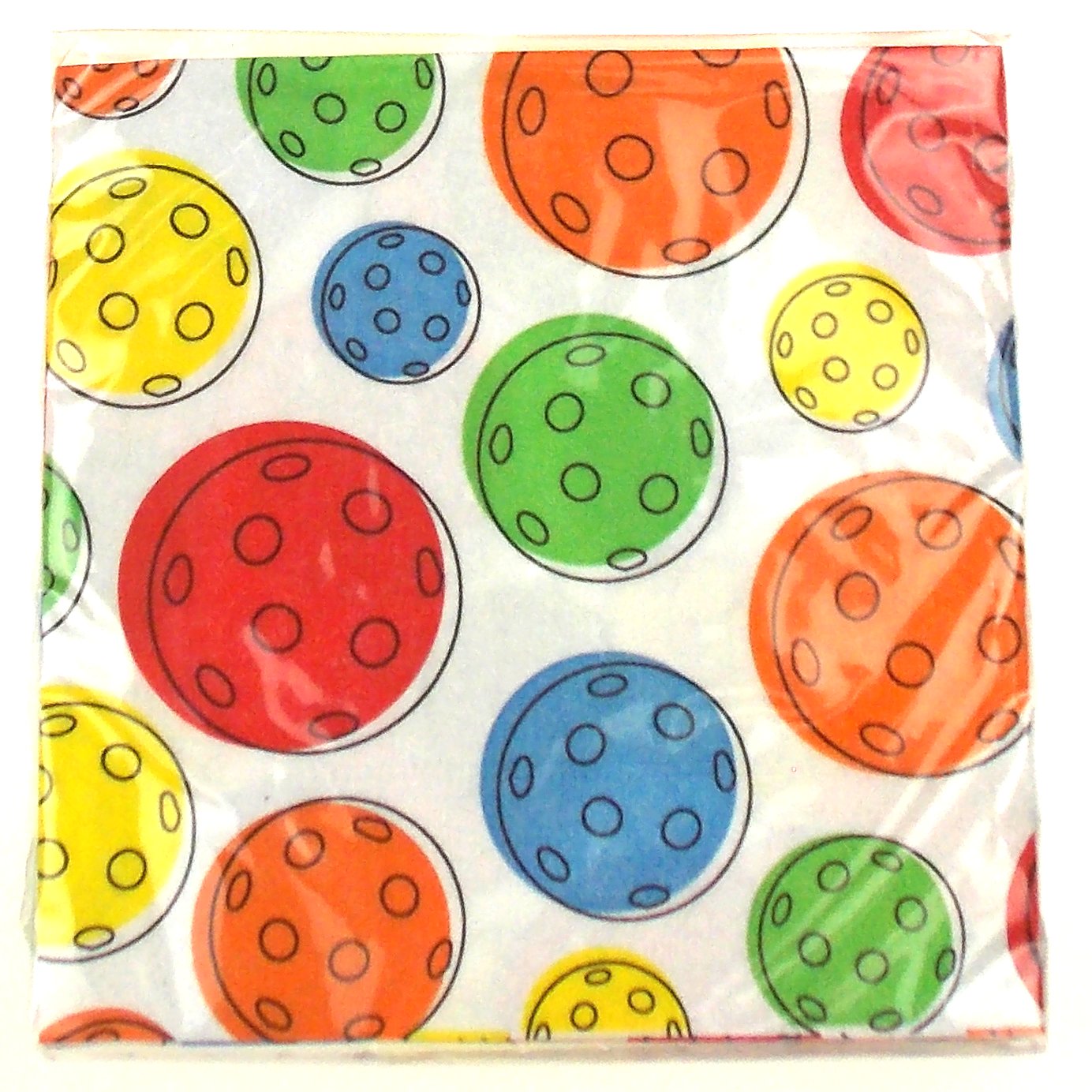 DESIGN 3 – White napkin with images of colorful pickleballs.