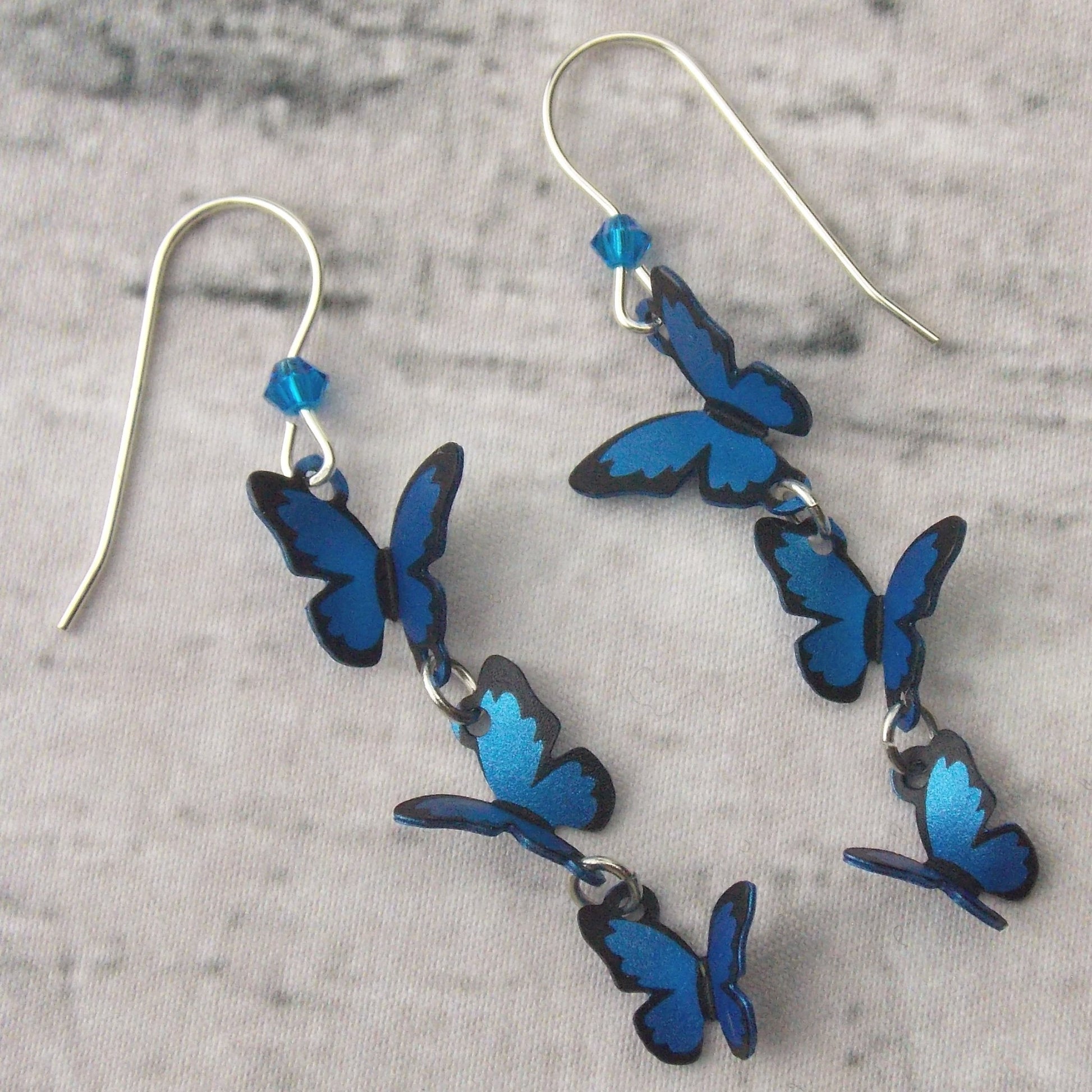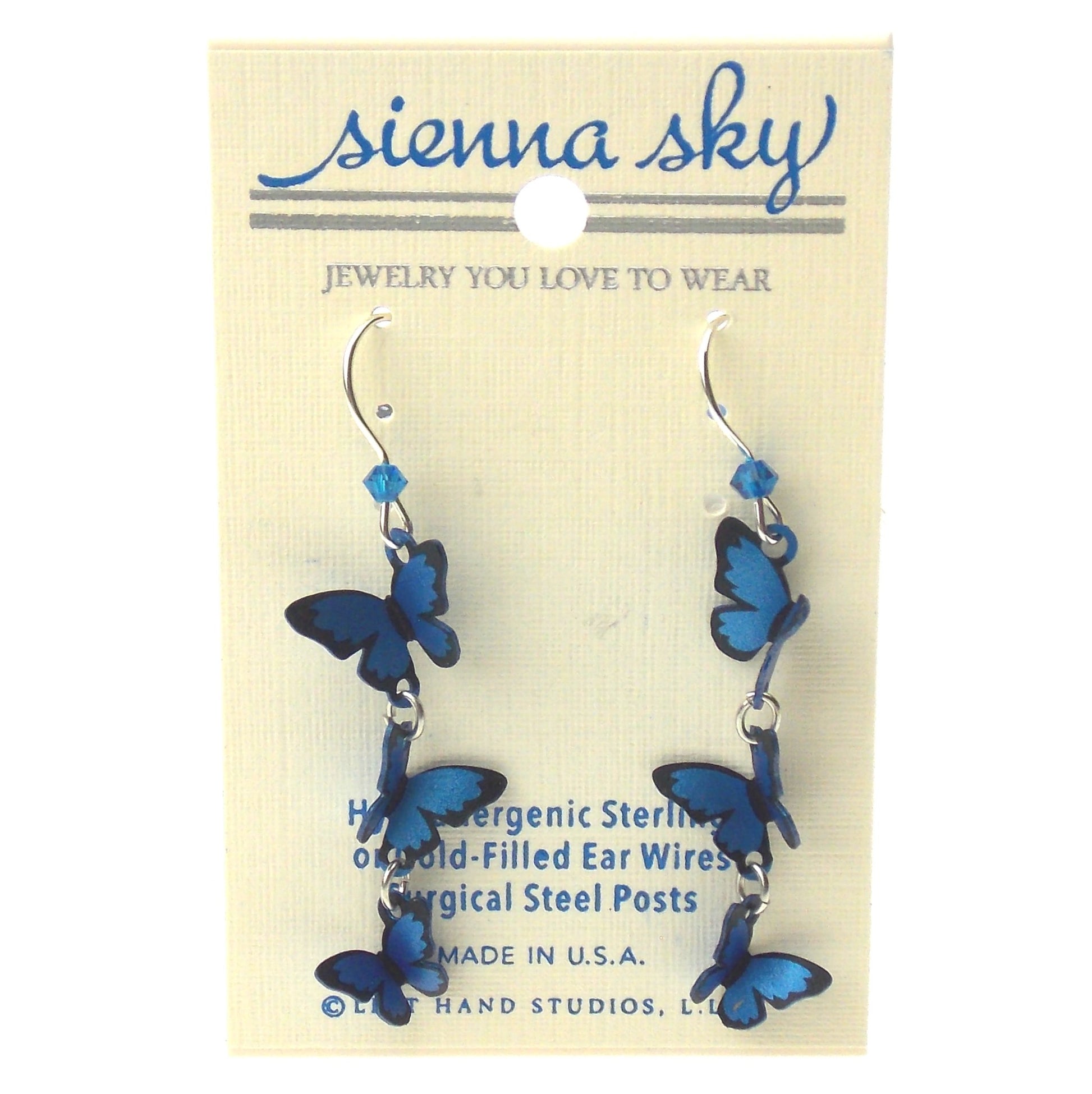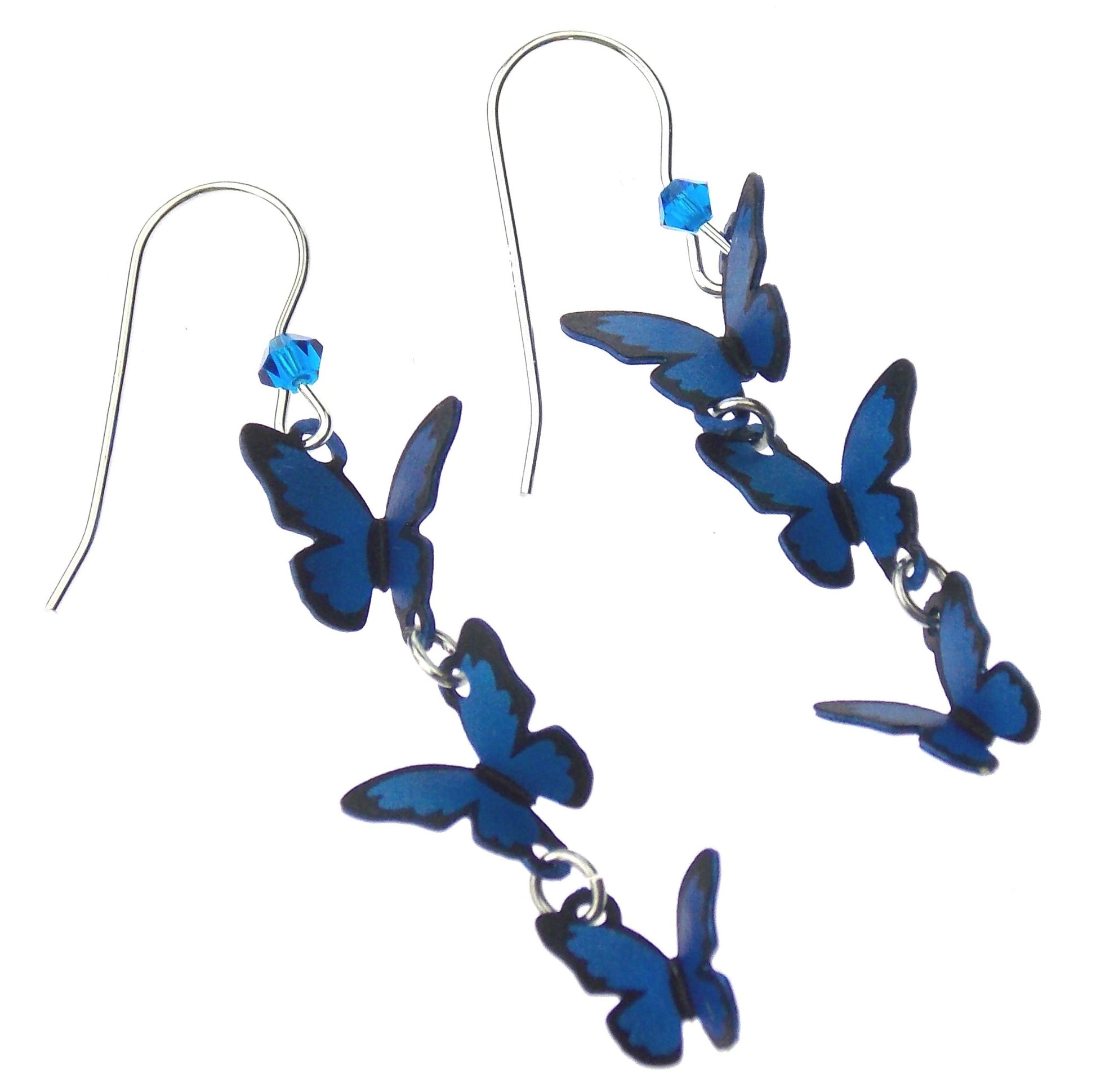 Sienna Sky Blue Butterfly Earrings 3D Hypoallergenic Sterling Silver USA Dangle
