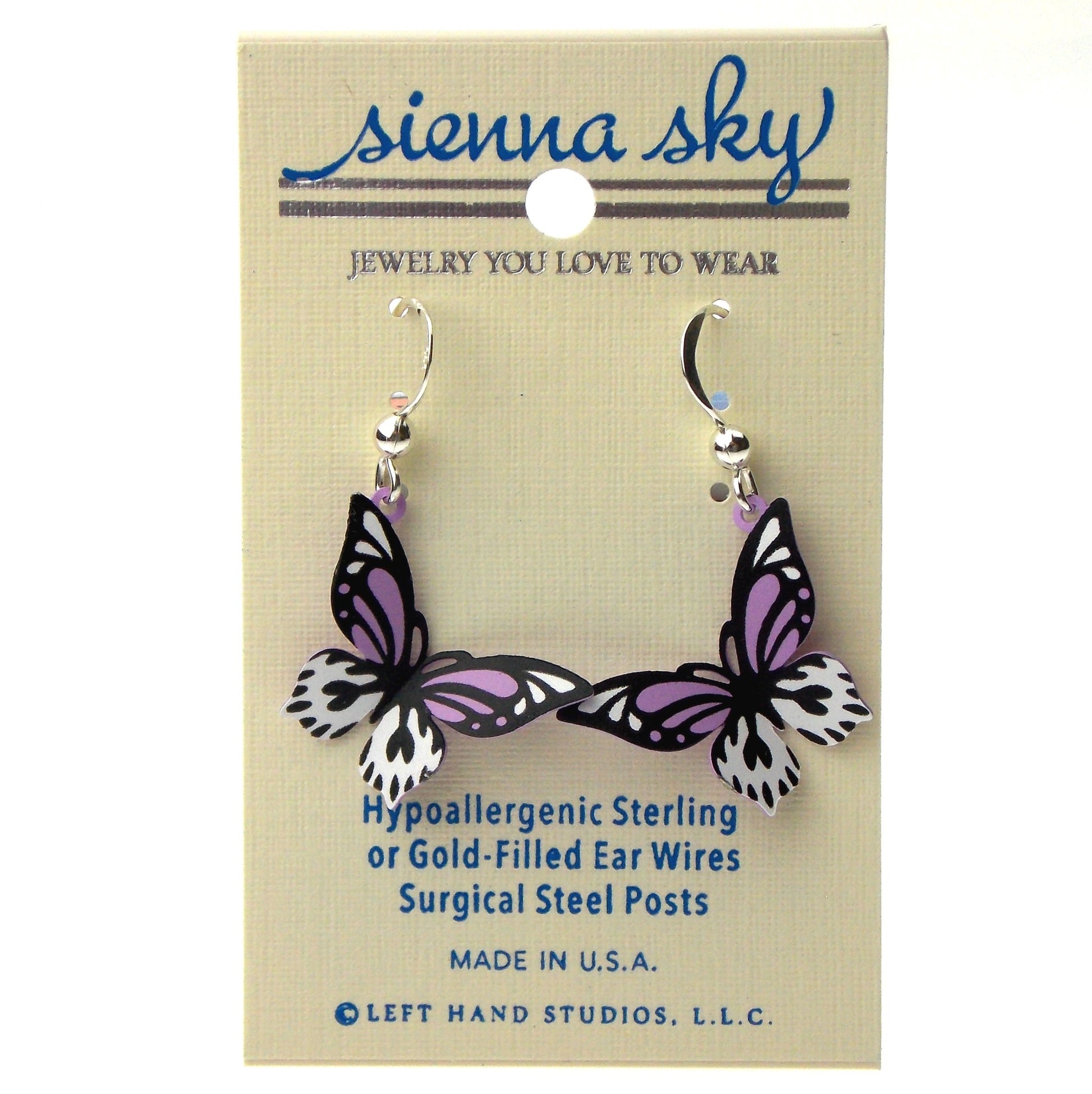 Sienna Sky Butterfly Purple Earrings Hypoallergenic Sterling Silver Dangle Gift