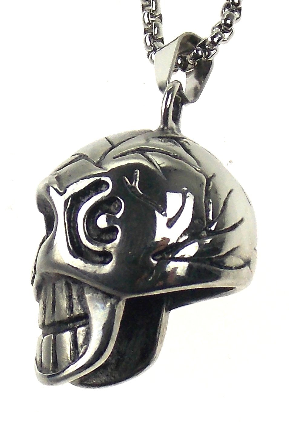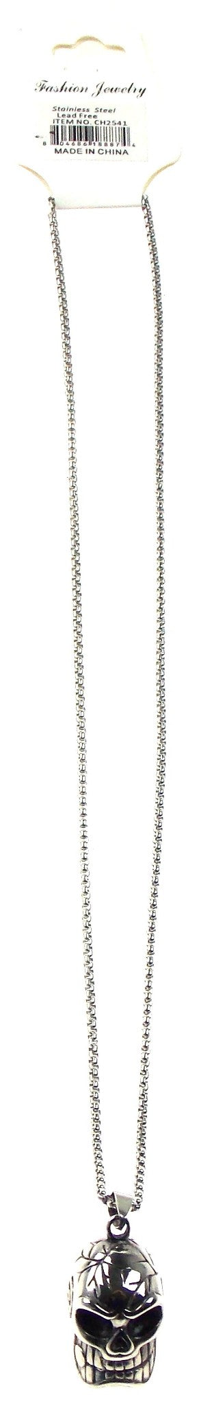 Skull Necklace Stainless Steel Silver 22" Chain Gothic Black Eyes Biker Punk Men