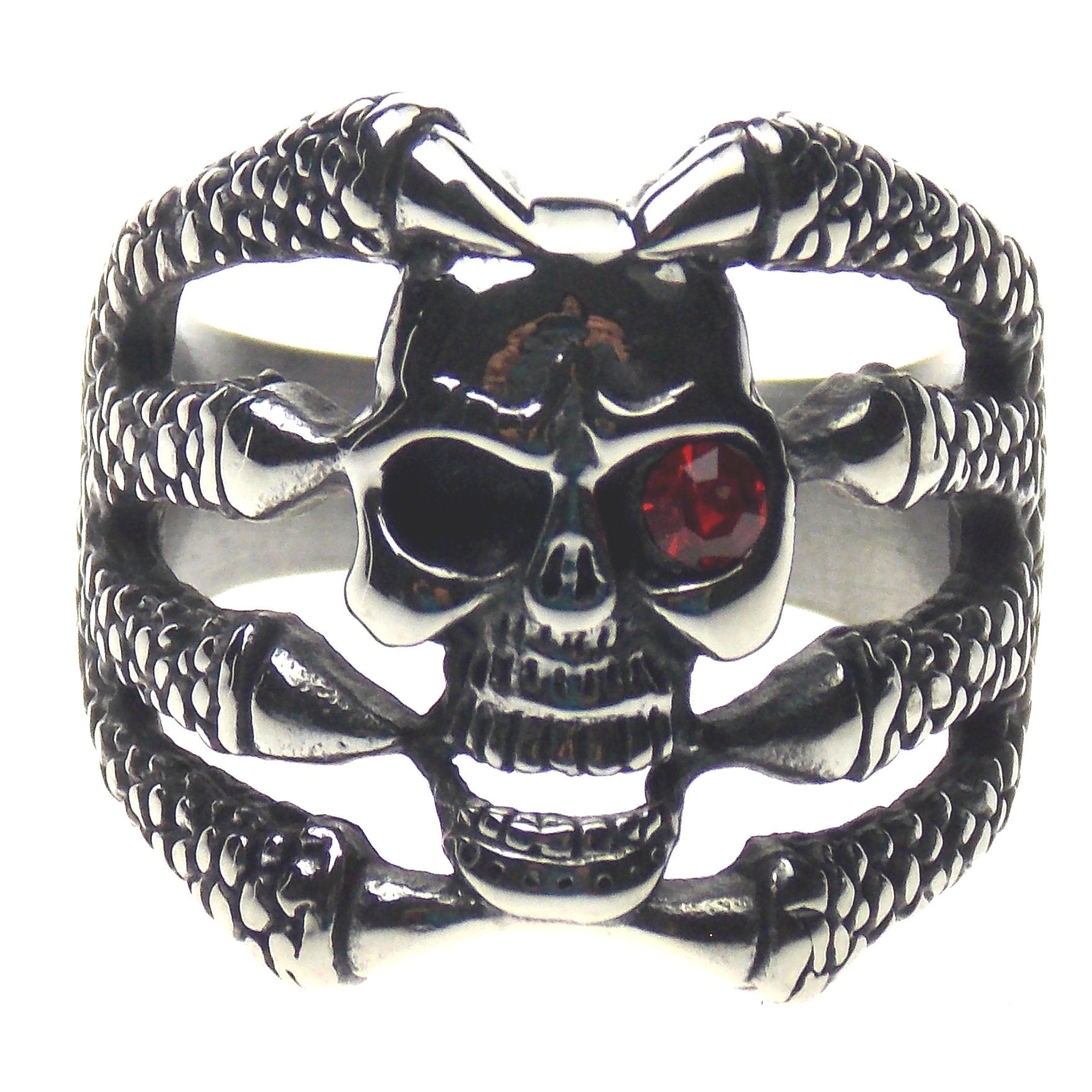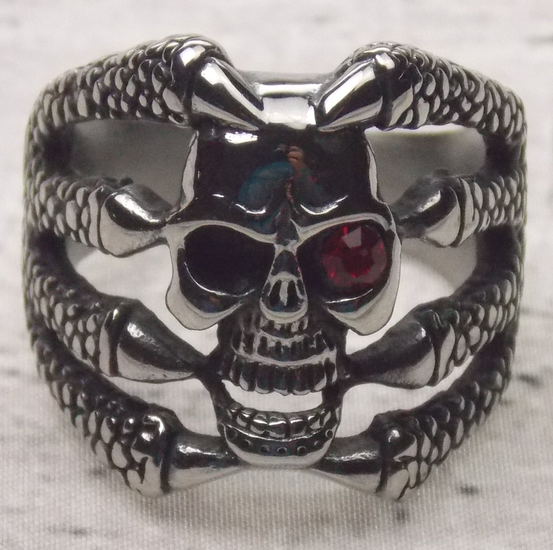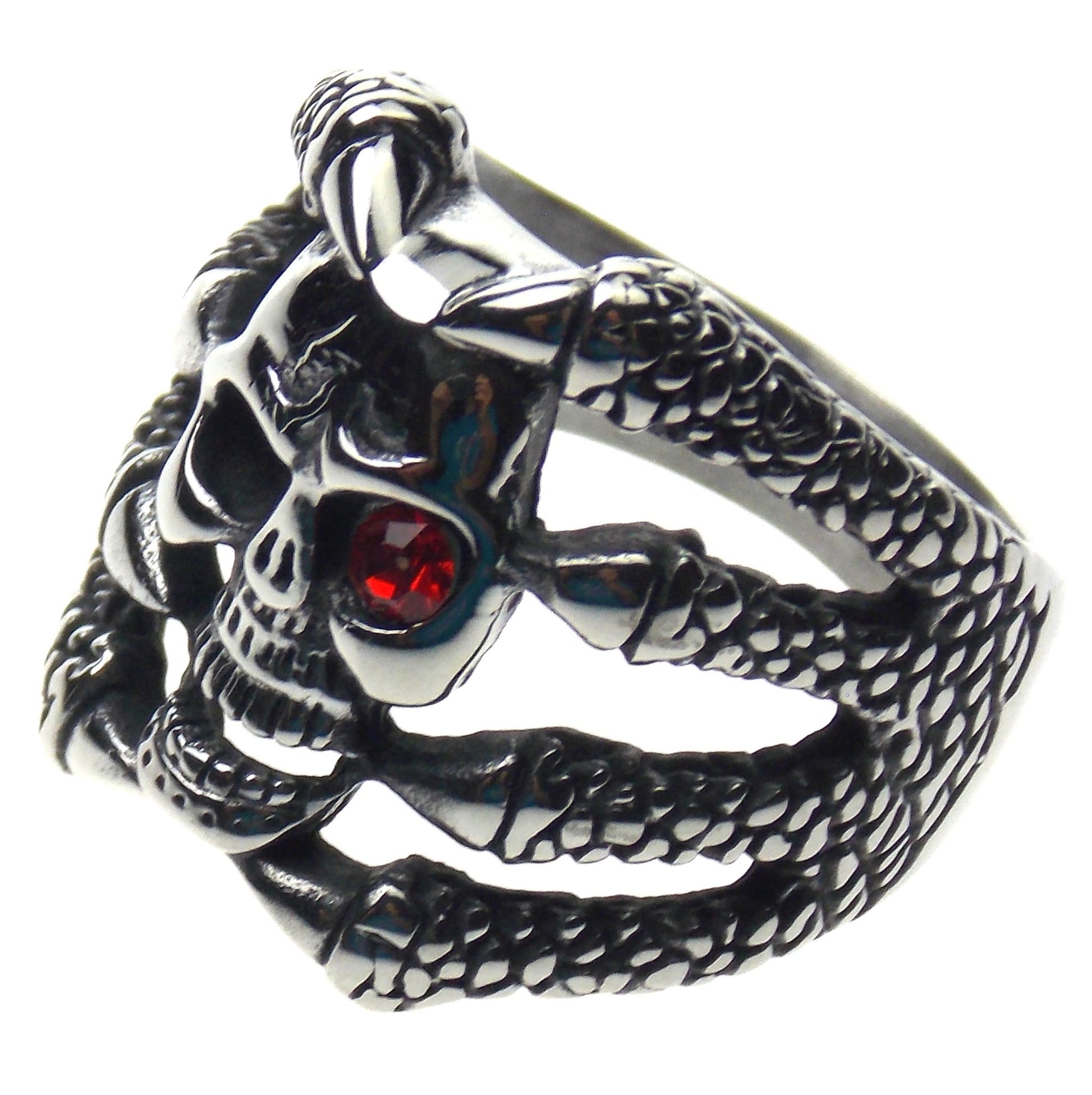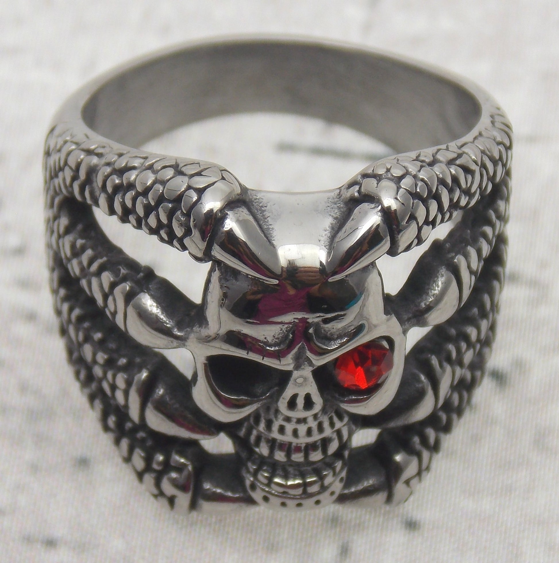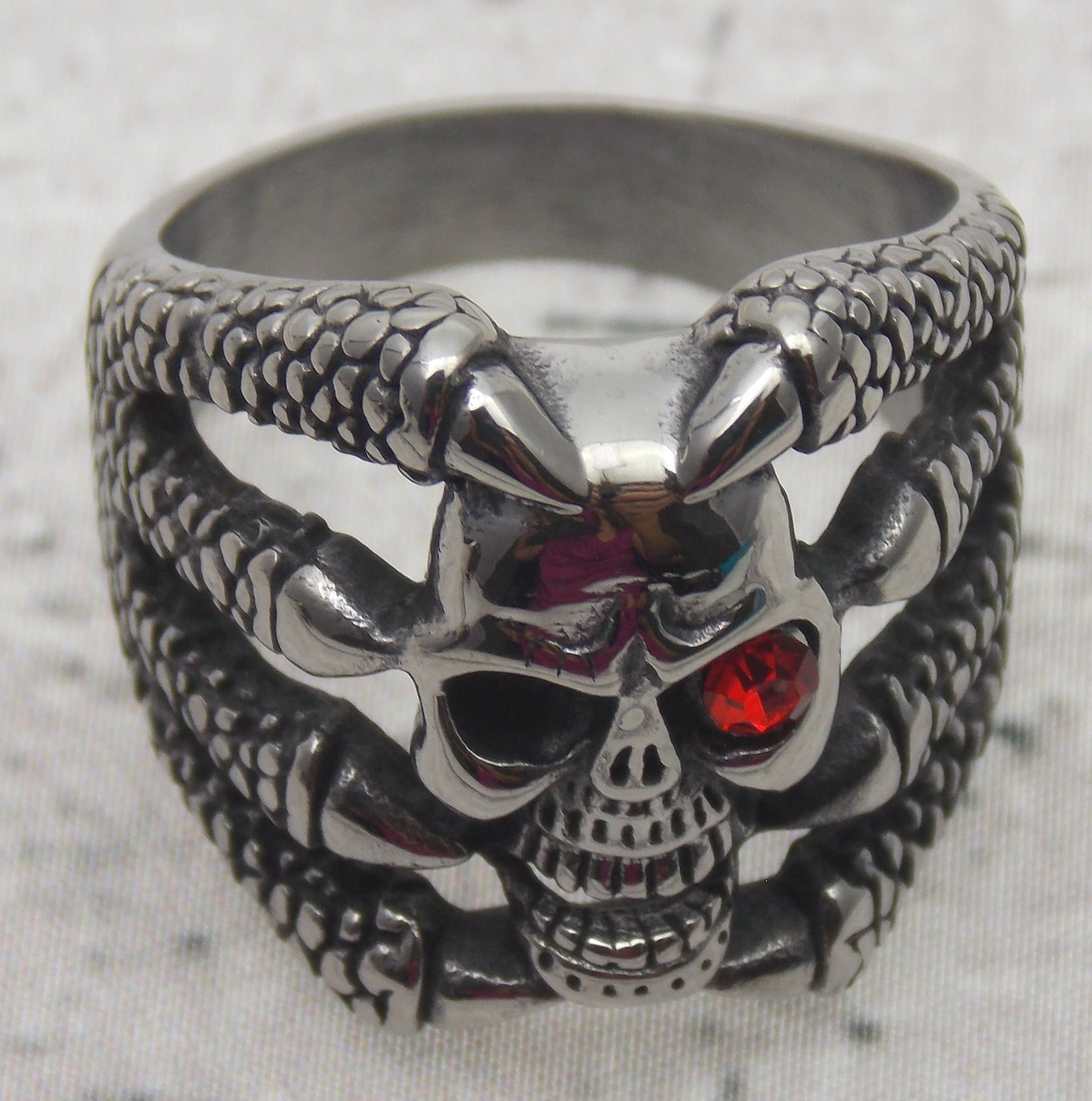 Skull Ring Stainless Steel Punk Biker One Red Eye Claws Gothic Teeth Xmas Gift