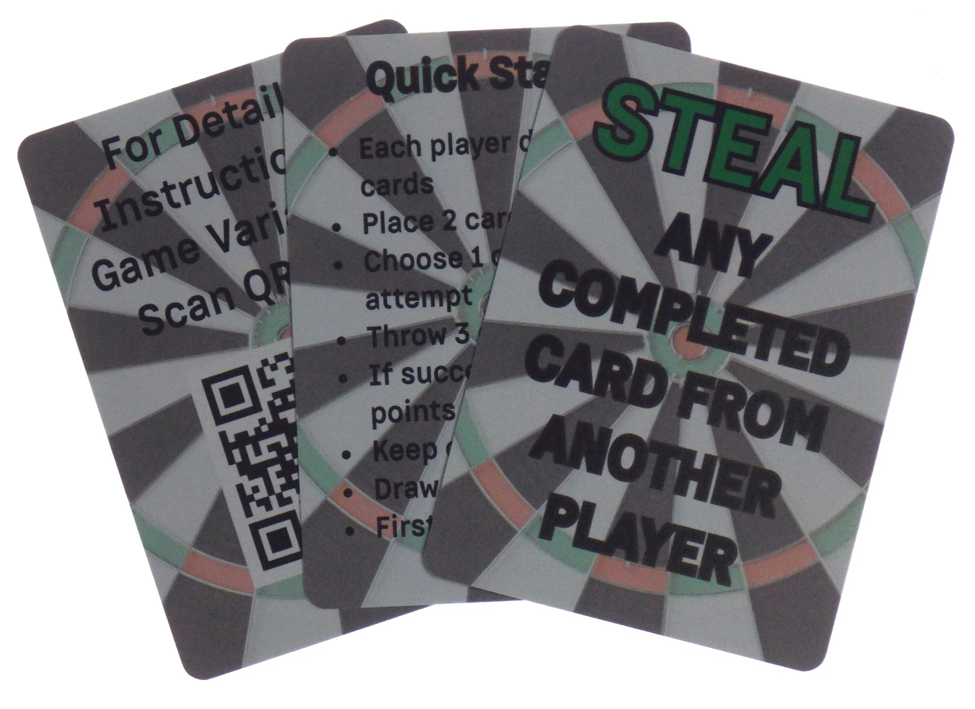 How It Works Draw from a 65-card deck featuring every dartboard target plus powerful wild cards. Choose your shot, step up to the oche, and throw your darts. Hit your target? Keep the card and score points. Miss? Back to the deck it goes. Simple to learn, endlessly strategic to master.