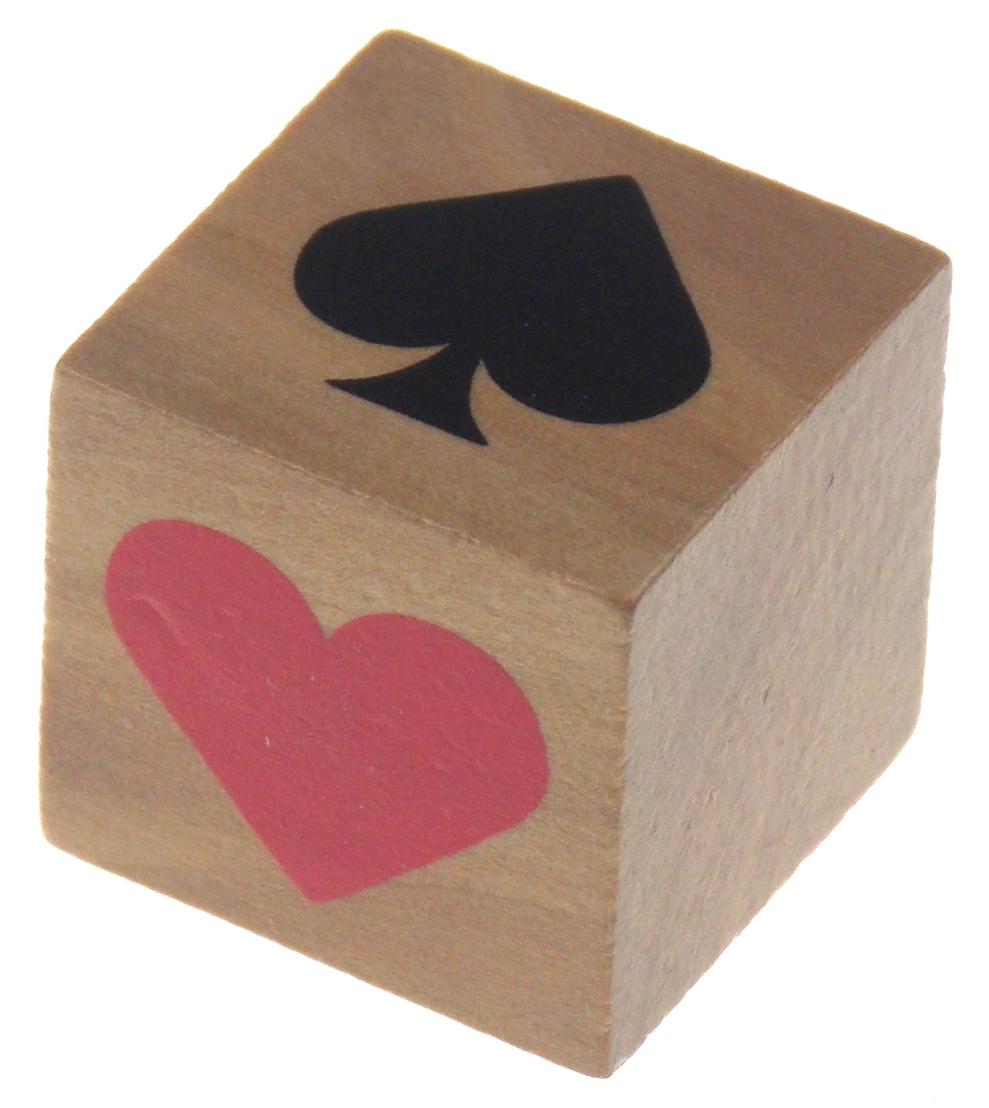 - As you can see from the photos, the wood grain will vary on the dice. Also note the size of the Suit Marker in the size of your hand - bigger than a normal size dice so you can easily rotate it to mark the current suit.